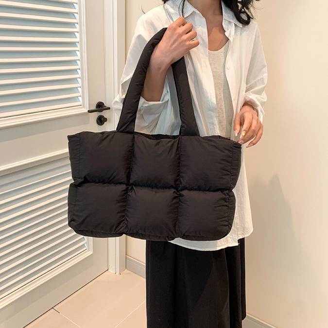 商品名:キルティングトートバッグ ダウン風バッグ ボリュームショルダーバッグ