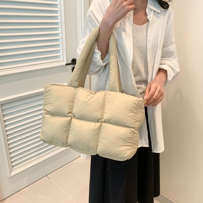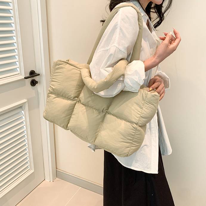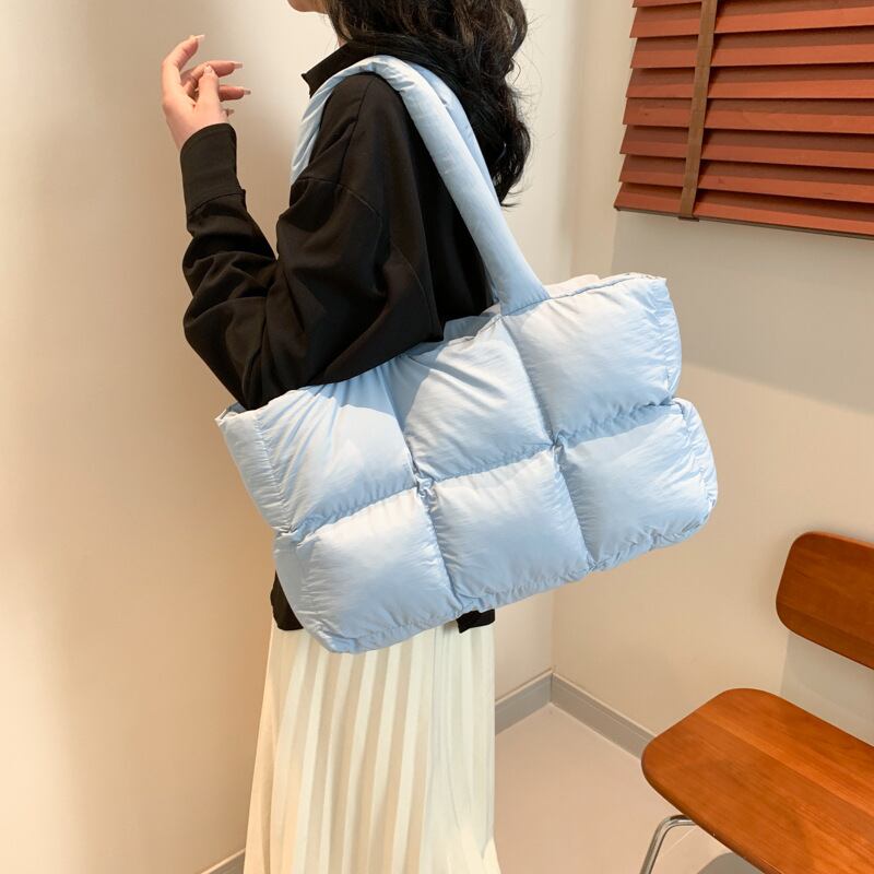 キルティングトートバッグ ダウン風バッグ ボリュームショルダーバッグ レディース バッグ カジュアル 軽量 ブラック グレー ブルー パープル ベージュ キャメル ピンク ホワイト おしゃれ ふわふわ素材 秋冬 春夏 人気 通勤 通学 マザーズバッグ K-B0183