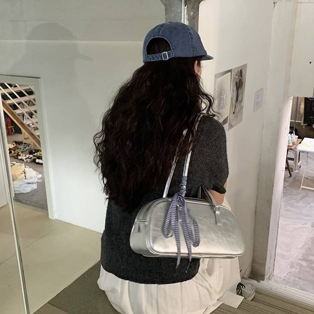内側には収納ポケットもあり、スマホや小物を整理しやすい構造。休日のお出かけやデート、カフェコーデにもぴったりの万能バッグです。シーズン問わず使えるシルバーカラーで、スタイルアップを叶える一点です。