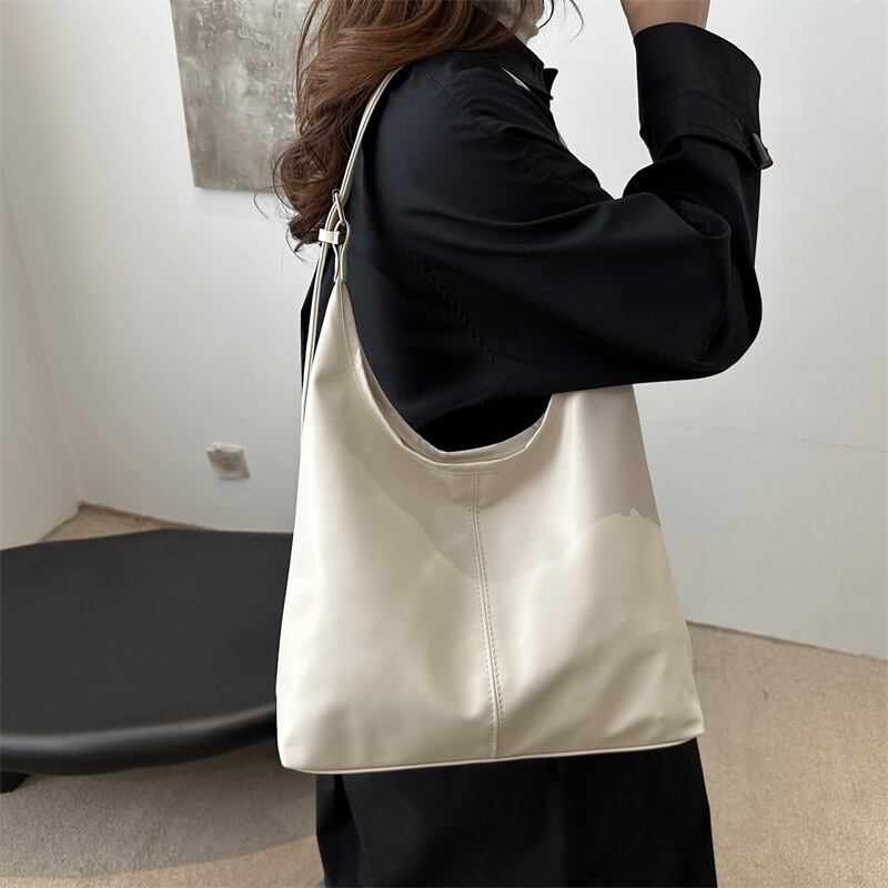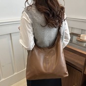 高見えPUレザーとミニマルデザインが魅力の、大容量ワンショルダーバッグ。シンプルながらも曲線的なフォルムが女性らしく、洗練された雰囲気を演出します。しっかり収納力もあるので、通勤・通学・お出かけなど幅広いシーンに対応。
