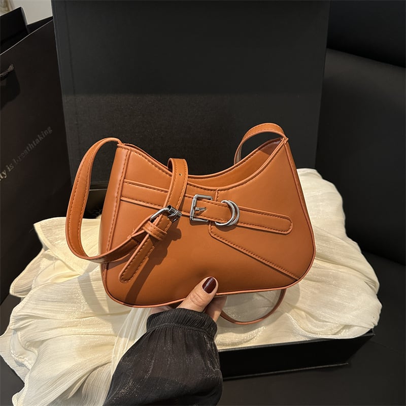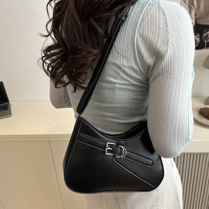 洗練されたフォルムにベルトモチーフがアクセントの、トレンド感あふれるショルダーバッグ。コンパクトながらもマチ幅がしっかりあるので、スマホや財布、小物などデイリー必需品がしっかり収まります。軽量設計で持ち歩きやすく、長時間のお出かけや旅行にもぴったりです。