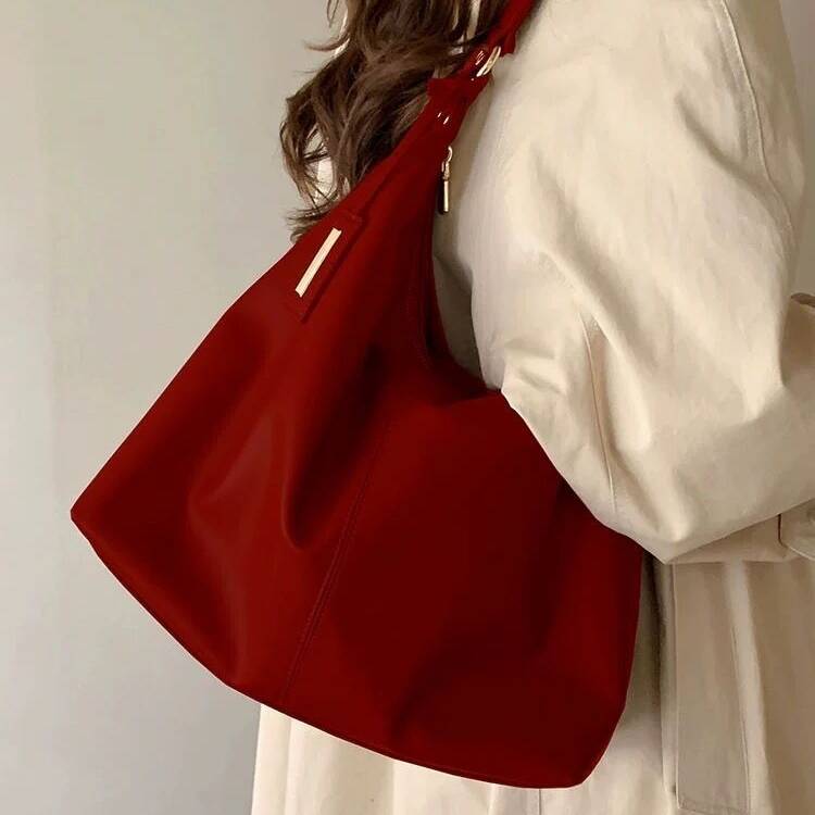 コーデに馴染みやすいワインレッドカラーのワンショルダーバッグは、洗練された大人っぽさと女性らしい柔らかさを演出してくれる逸品。程よい光沢感のあるレザー調素材とゴールドの金具が、上品な印象を与えながら普段使いにもぴったりな実用性を備えています。