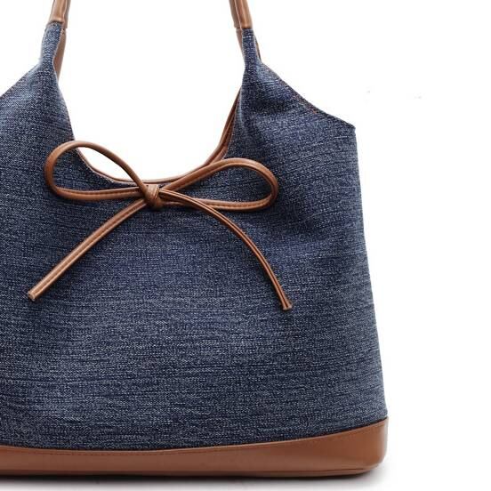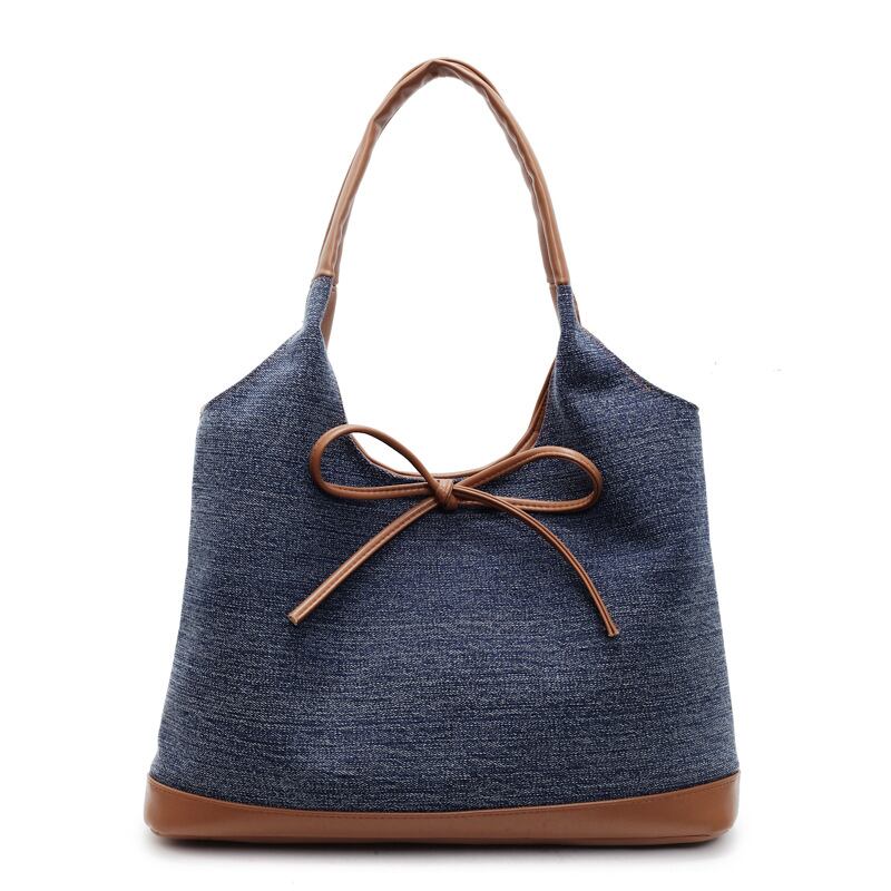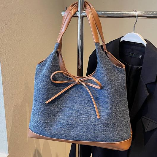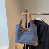 デニム風 トートバッグ 大容量 ショルダーバッグ レディース バッグ リボン付き カジュアル 上品 韓国風バッグ 秋冬 春夏 コーデ おしゃれ 人気 K-B0192