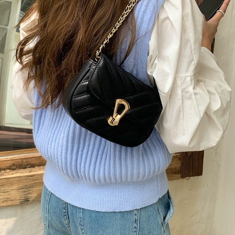 ゴールドのチェーンストラップは肩掛け・斜め掛けどちらも可能で、スタイリングに合わせて自由に楽しめます。高級感のあるデザインながらも手に取りやすい価格帯で、10代?30代女性を中心に人気急上昇中のアイテムです。韓国ファッション好きやトレンドに敏感な方にぜひ取り入れていただきたい一品です。