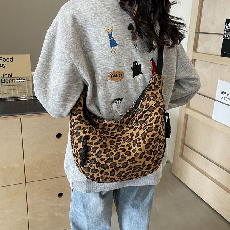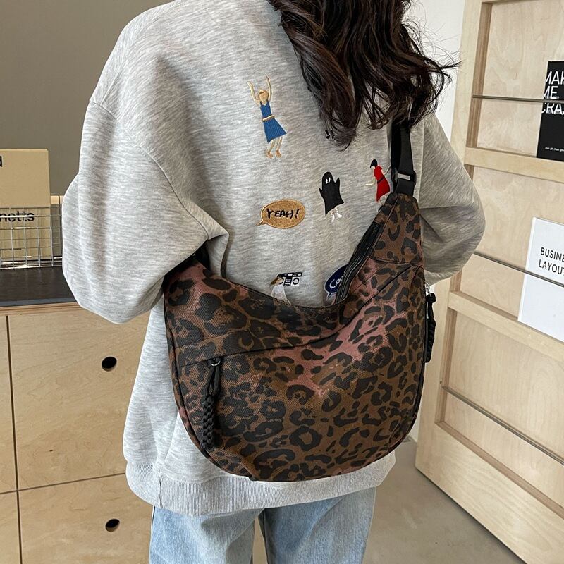 大胆なレオパード柄が視線を惹きつける、韓国風デザインのショルダーバッグ。ブラウンとダークブラウンの2色展開で、コーデに合わせて選べるのが魅力です。軽量で持ち運びやすく、デイリーから旅行・アウトドアまで幅広く活躍する万能アイテムです。