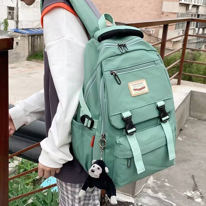 シンプルながらも可愛いくまのチャーム付きで、韓国風ファッションとの相性も抜群!6色展開で、お気に入りのカラーがきっと見つかります。中高生の通学バッグとしてはもちろん、週末のレジャーや旅行バッグとしても使いやすい万能デザイン。おしゃれで実用性も抜群なリュックをぜひお試しください。