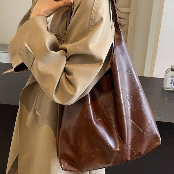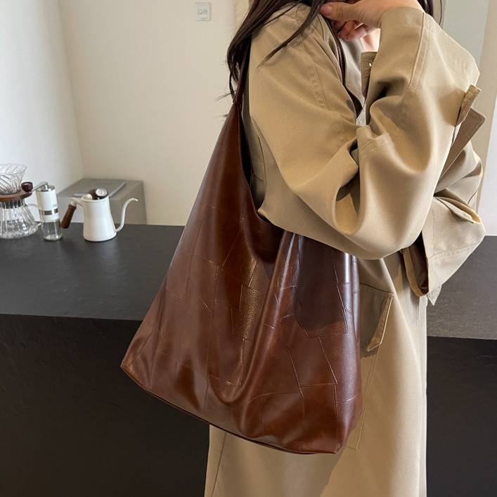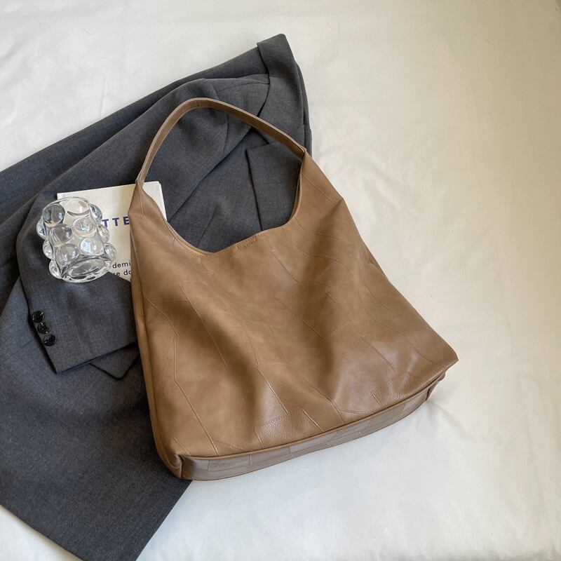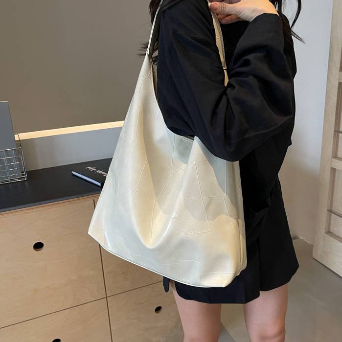 柔らかくしっとりとしたフェイクレザーを使用した、上品なキルティング風のワンショルダーバッグ。ステッチが施されたパッチワーク調のデザインが、シンプルながらも高見えするアクセントに。通勤や通学、デイリーからちょっとしたお出かけまで幅広いシーンにマッチする万能トートです。