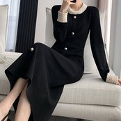 ワンピース ロングワンピース Aラインワンピース レディース 春夏 秋冬 春 夏 秋 冬 黒 ロング パールボタン 長袖 フレアワンピース ロングワンピ ワンピドレス パールビジュ OL エレガント フォーマル ブラック 大きいサイズ きれいめ ドレスワンピース お呼ばれ 韓国 ファッション オフィスカジュアル 韓国風 キャバドレス ナイトドレス ナイトワンピ カジュアル 10代 20代 30代 40代 C-OSS0125