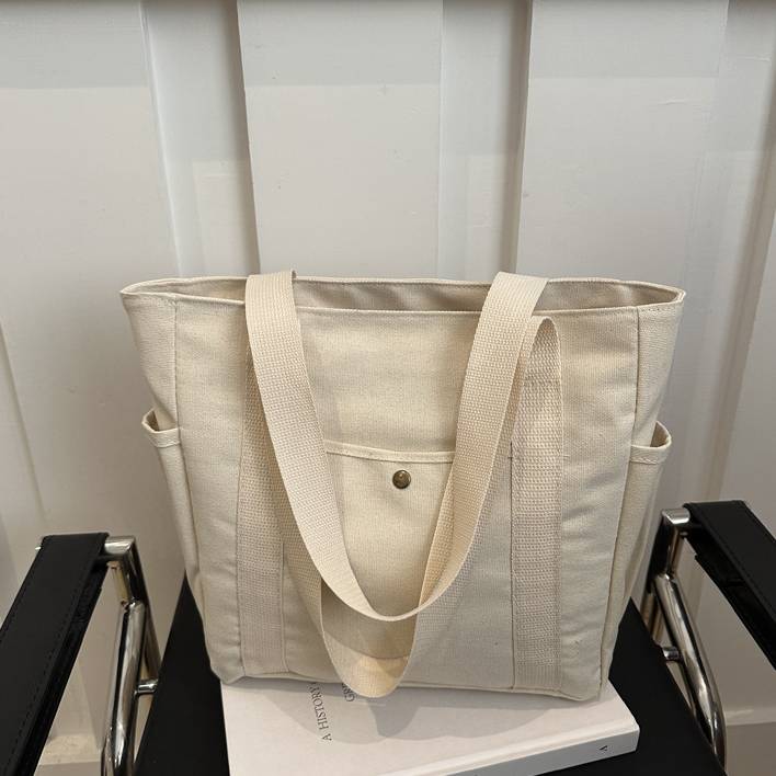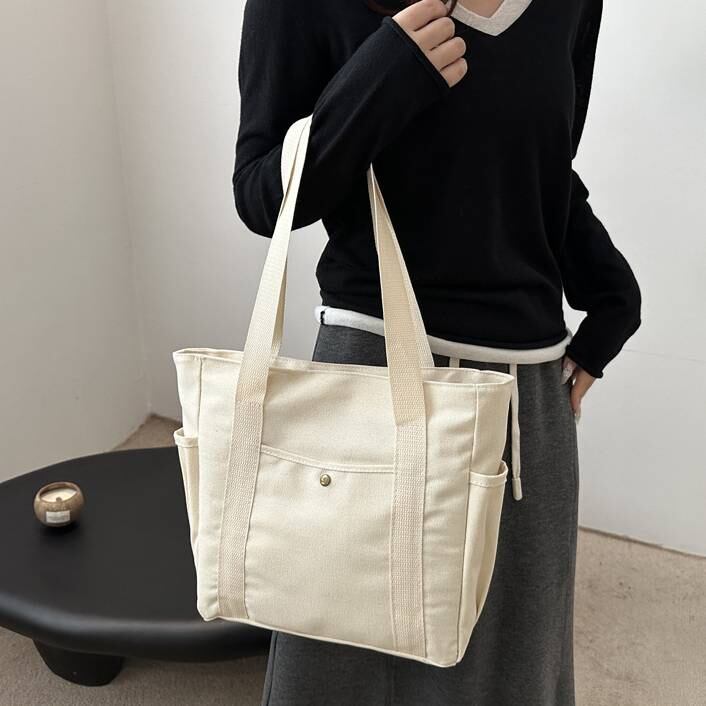毎日のお出かけや通勤・通学にぴったりの大容量キャンバストートバッグ。シンプルなデザインだからどんなコーデにも合わせやすく、季節を問わず使える万能アイテムです。肩掛け・手持ちの両方に対応できる便利さも魅力です。