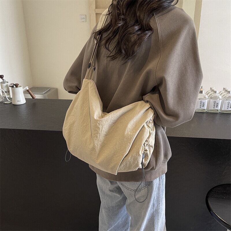 商品名: 毎日のコーデに溶け込む、ゆったりシルエットの軽量ショルダーバッグ