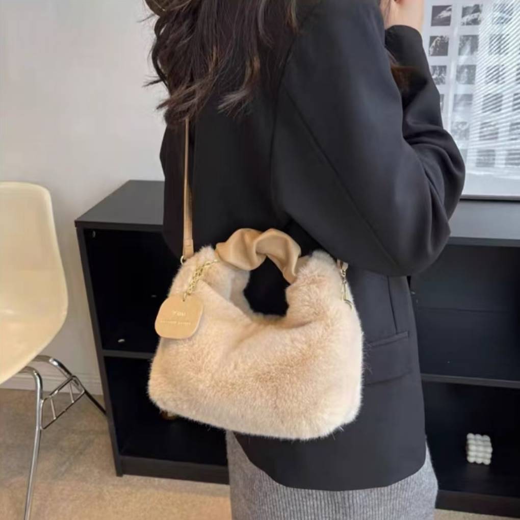 ファーバッグ ショルダーバッグ ハンドバッグ レディース ふわふわ 斜めがけ 肩掛け 冬バッグ 小さめ 軽量 おしゃれ かわいい 韓国風 秋冬コーデ 黒 白 ベージュ ブラック ホワイト カーキ 10代 20代 30代 40代 K-B0250