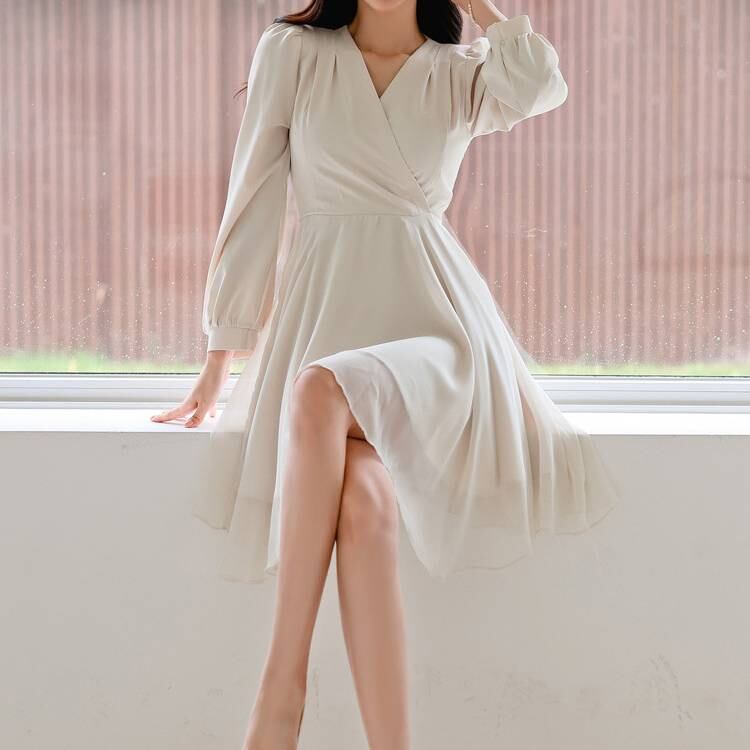 商品名:シフォン フレアワンピース 長袖 Aライン