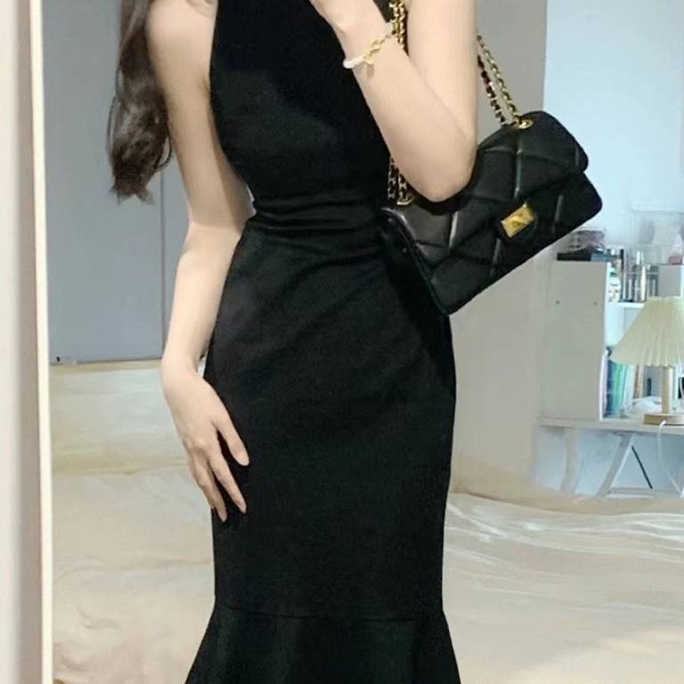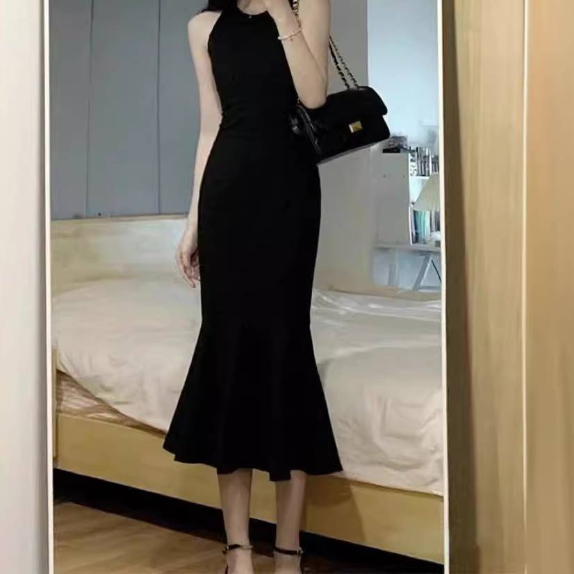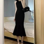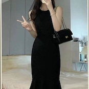 マーメイドライン ワンピース タイトワンピース ノースリーブ ミディ丈 レディース きれいめ 上品 大人可愛い シンプル ブラック 韓国風 オフィス 通勤 結婚式 二次会 デート お呼ばれ ドレス フォーマル カジュアル 春 夏 秋 冬 黒 おしゃれ 人気 美シルエット 20代 30代 40代 女性向け トレンド ファッション C-OSS0130