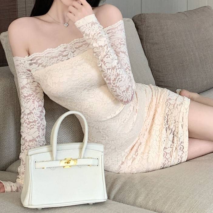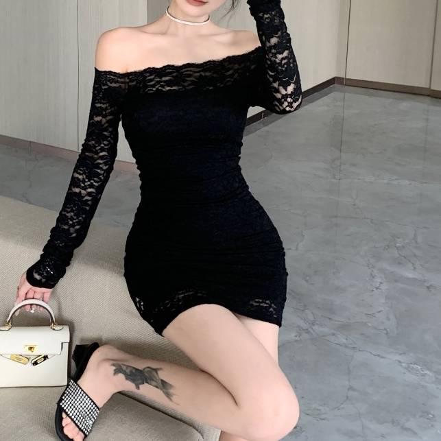 レース ワンピース オフショルダー タイトワンピース レディース ミニ丈 ミニドレス 韓国風 セクシー 大人可愛い きれいめ パーティー 二次会 デート ナイトドレス 長袖 フォーマル クラブ 黒 白 青 ブラック ホワイト ダークブルー 春 夏 秋 冬 おしゃれ 人気 20代 30代 40代 女性 上品 トレンド ファッション 体型カバー 美シルエット セクシードレス C-OSS0129