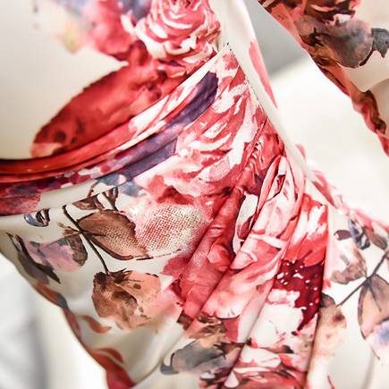 華やかな花柄プリントが目を引くタイトシルエットのワンピース。