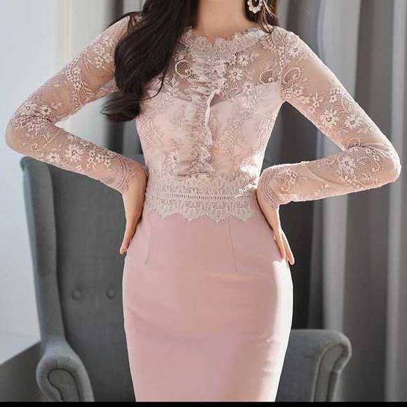 商品名:レーストップ タイトワンピース 長袖 ドレス