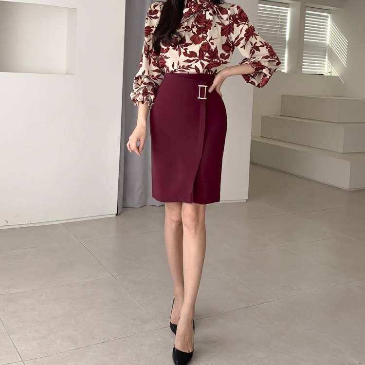 レッド セットアップ レディース 花柄ブラウス タイトスカート 上下セット ハイウエスト 通勤 OL オフィス お呼ばれ デート きれいめ 上品 フォーマル 韓国風 春 夏 秋 冬 20代 30代 40代 高見え エレガント 大人フェミニン トレンド 人気 着痩せ 美ライン セットコーデ スリットスカート リボンタイ C-OSS0147