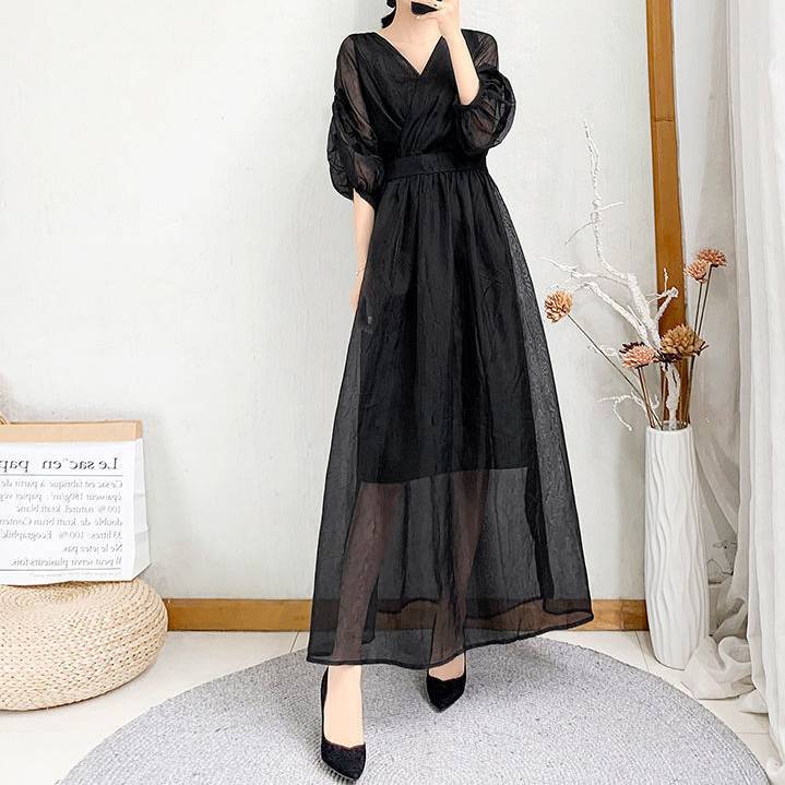 商品名:シアー ロングワンピース Vネック Aライン