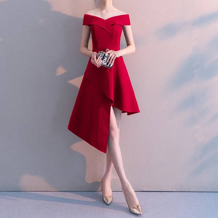 商品名:オフショルダー アシンメトリーヘム ドレス ワンピース