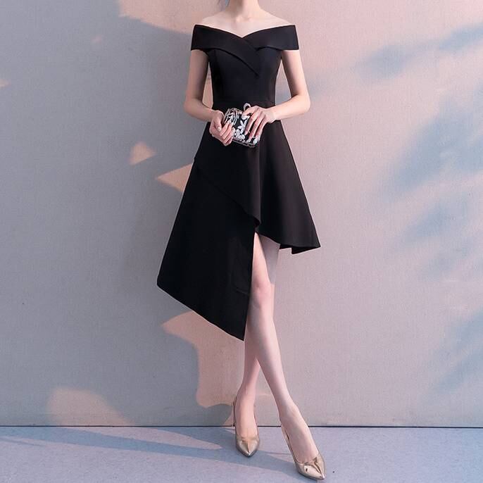 ドレス レディース ワンピース オフショルダー アシンメトリー ミディ丈 パーティー 結婚式 二次会 演奏会 披露宴 お呼ばれ 上品 エレガント きれいめ Aライン セクシー スリット シンプル ブラック ネイビーブラック ボルドー 春 夏 秋 冬 20代 30代 40代 人気 C-OSS0167