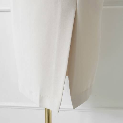 スカートのフロントスリットが程よい抜け感をプラスし、オフィスからフォーマルシーンまで幅広く活躍する1着です。