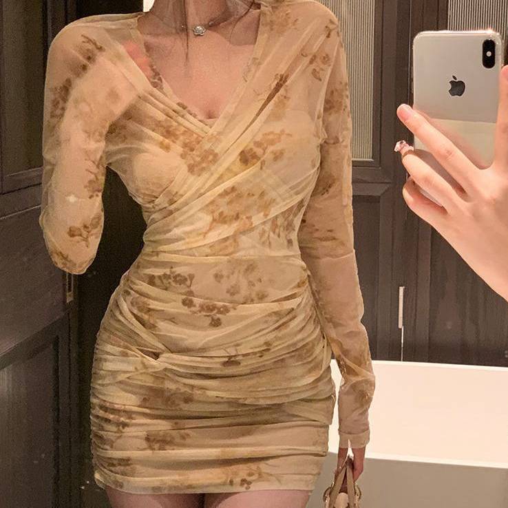 シアー タイトワンピース ミニドレス セクシー 上品 ワンピース レディース 大人可愛い 透け感 ボディライン 美シルエット パーティー デート モテコーデ ベージュ C-OSS0226