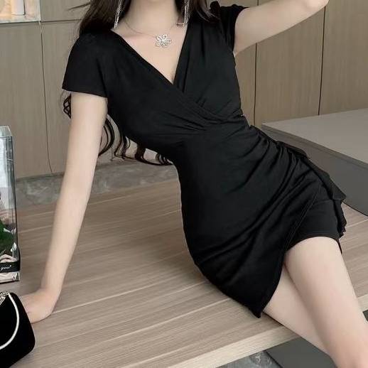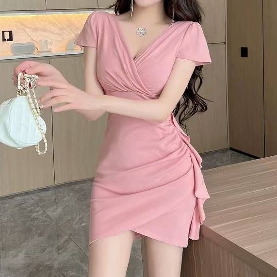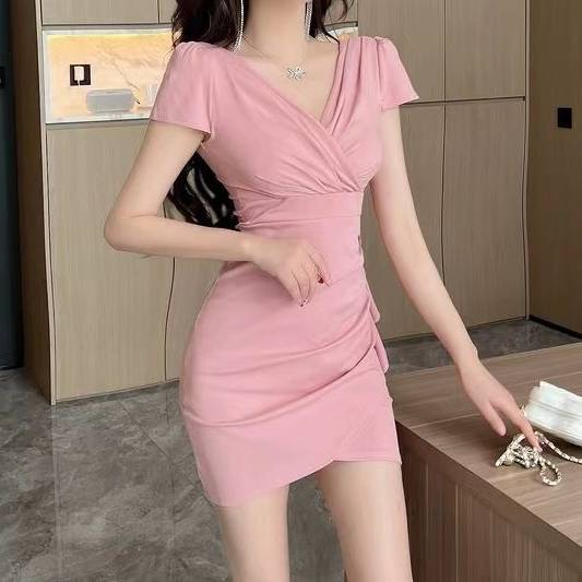 ミニワンピース タイトワンピース レディース セクシー 深Vネック ドレープ デザイン ショート丈 ワンピ タイト 大人可愛い 韓国風 パーティー お呼ばれ 食事会 デート きれいめ ブラック ピンク 20代 30代 スリム シルエット 美脚 上品 ワンタイプ C-OSS0223
