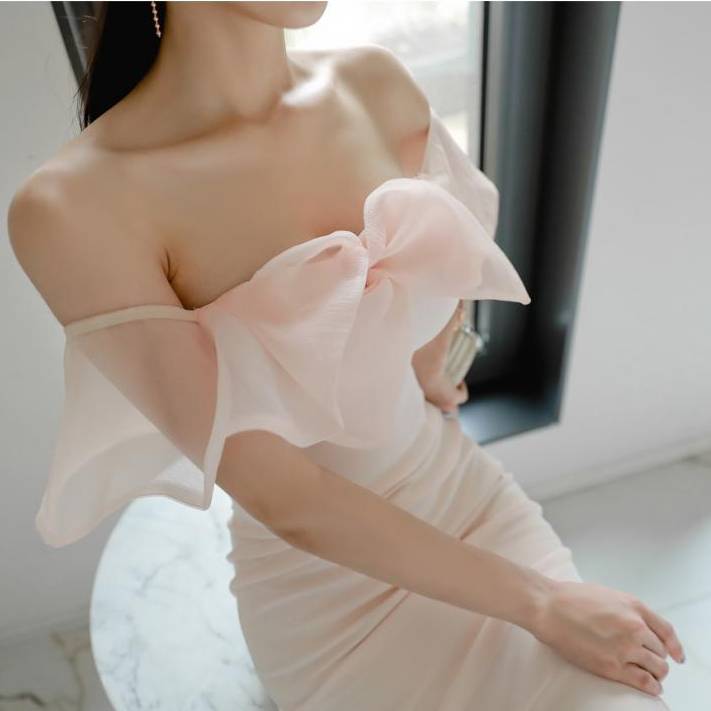 商品名:大人可愛さを纏うオフショルダー×リボンデザインドレス