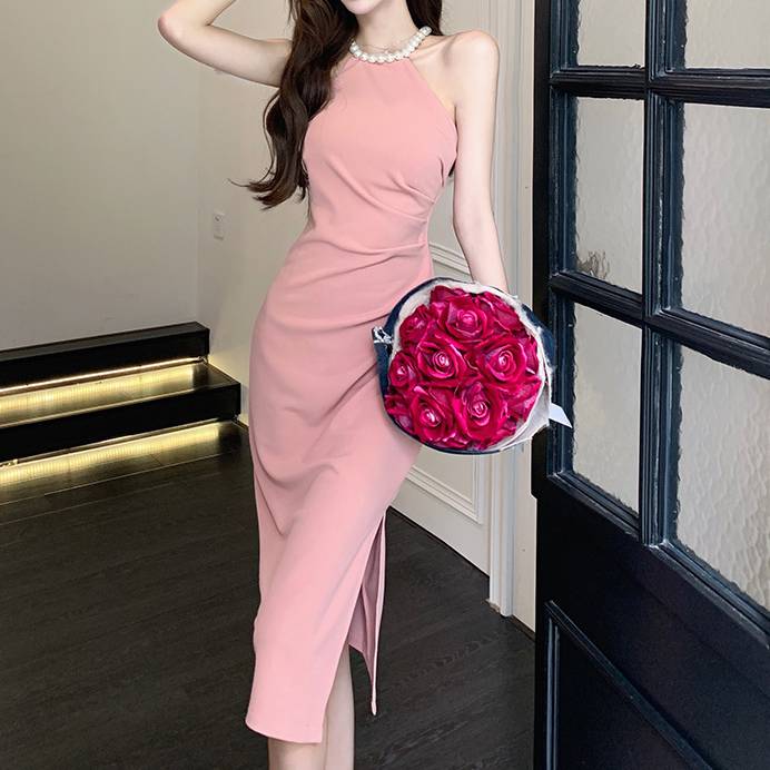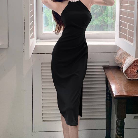 商品名:パールネック スリットミディドレス