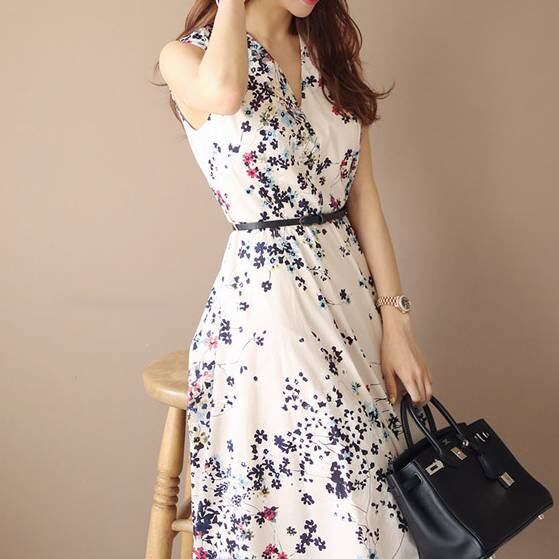 ベージュ ワンピース レディース 花柄 ノースリーブ ミモレ丈ワンピース フラワープリント エレガント 上品 きれいめ 大人可愛い 韓国ファッション 春 夏 秋 オールシーズン 着回し おしゃれ 通勤 デート お呼ばれ 二次会 カジュアル 人気 トレンド フェミニン C-OSS0196