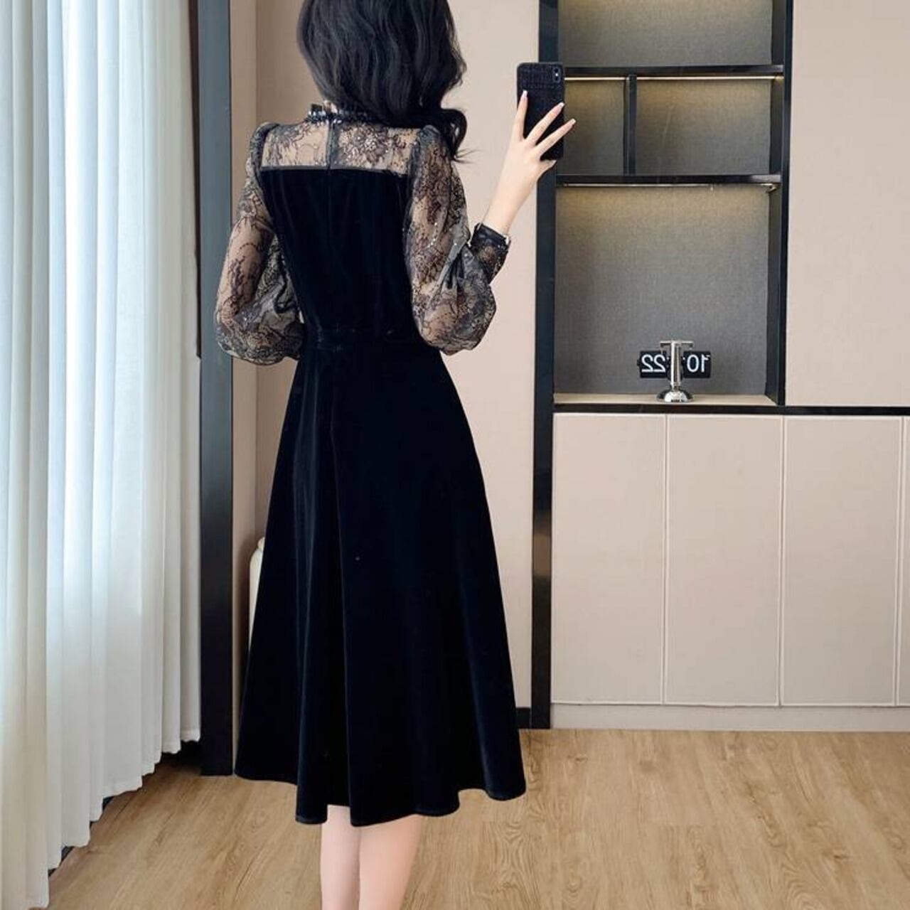 商品名:エレガントレーススリーブ ベルベットワンピース