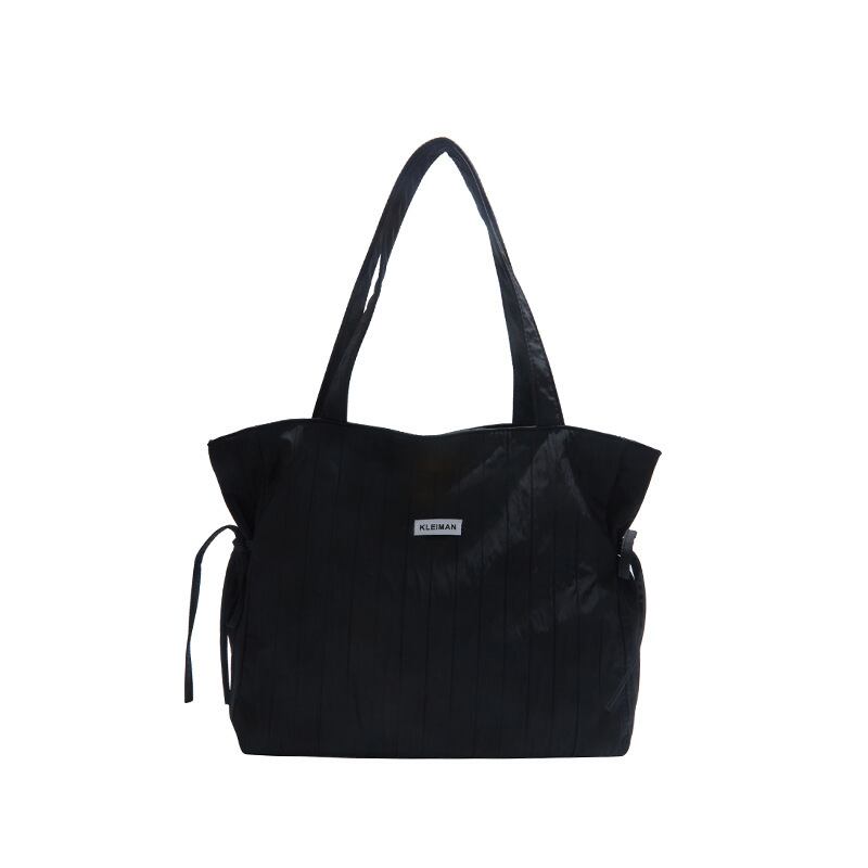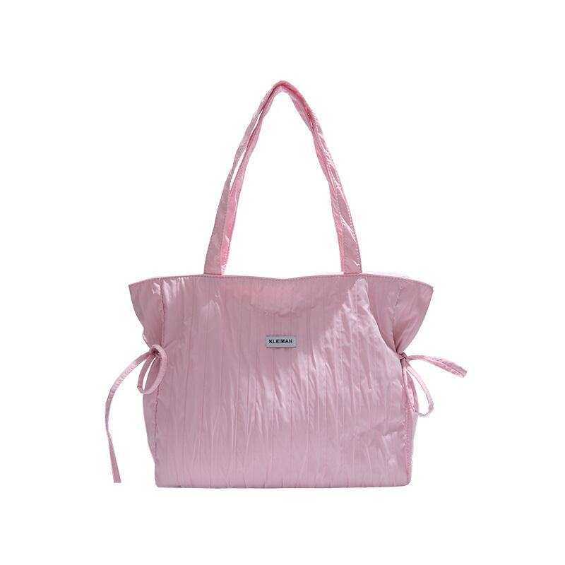 サイドのリボンデザインがさりげないアクセントになり、シンプルながらも女性らしさをプラス。ブラック・ピンク・オフホワイト・ホワイトの使いやすいカラー展開で、季節を問わず長く愛用できる万能トートバッグです。