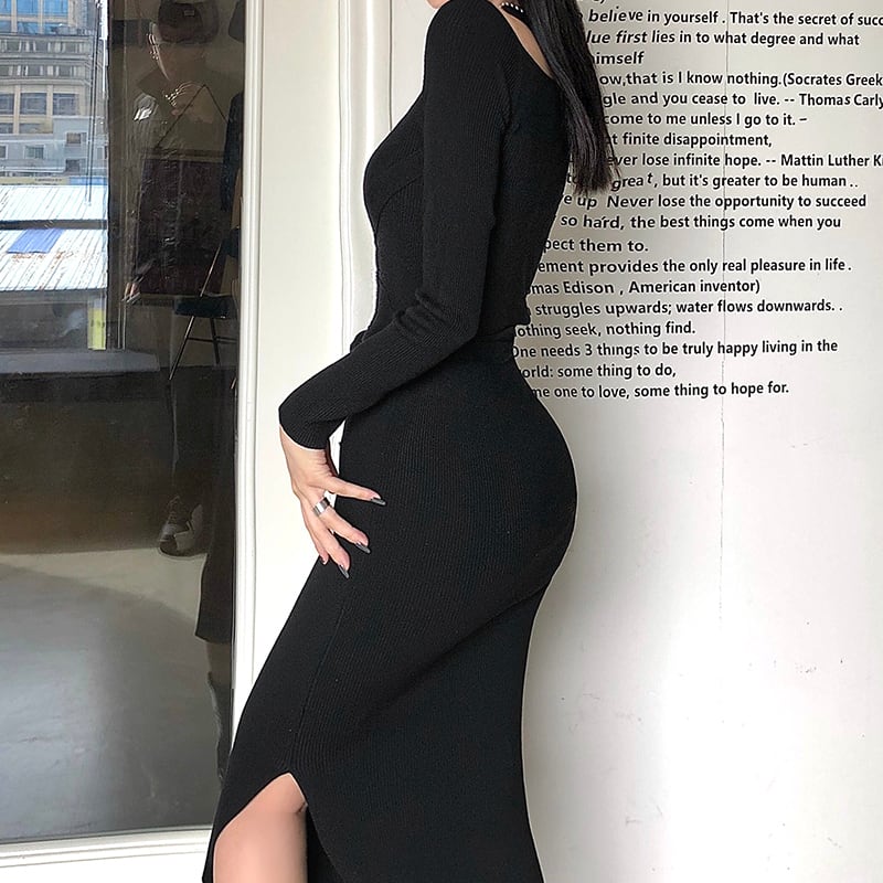 商品名:ホルダーネック タイト リブニットワンピース