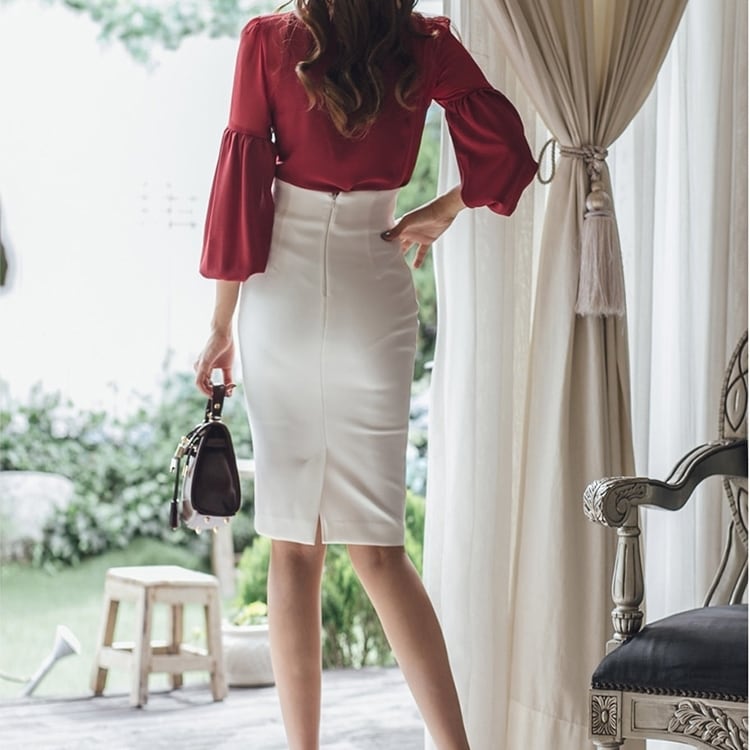 純白のタイトフィットが爽やかでセクシーなスカート。