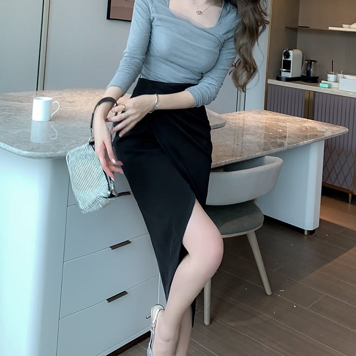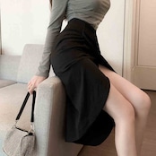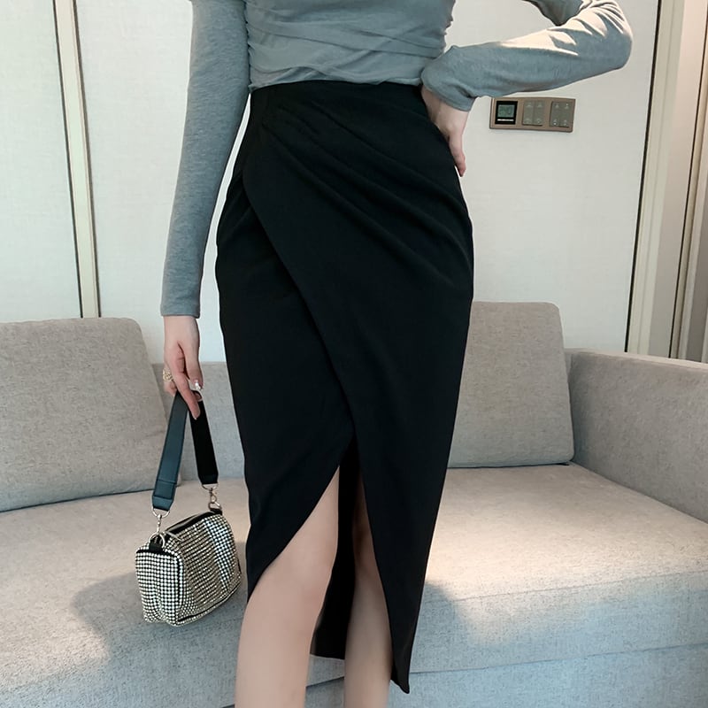大胆スリット アシンメトリーデザイン ペンシルスカート C-SAW0009