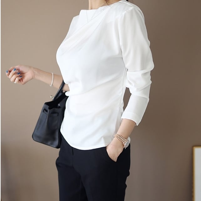 与えつつも、上品で大人っぽくきまるトップスシャツ。