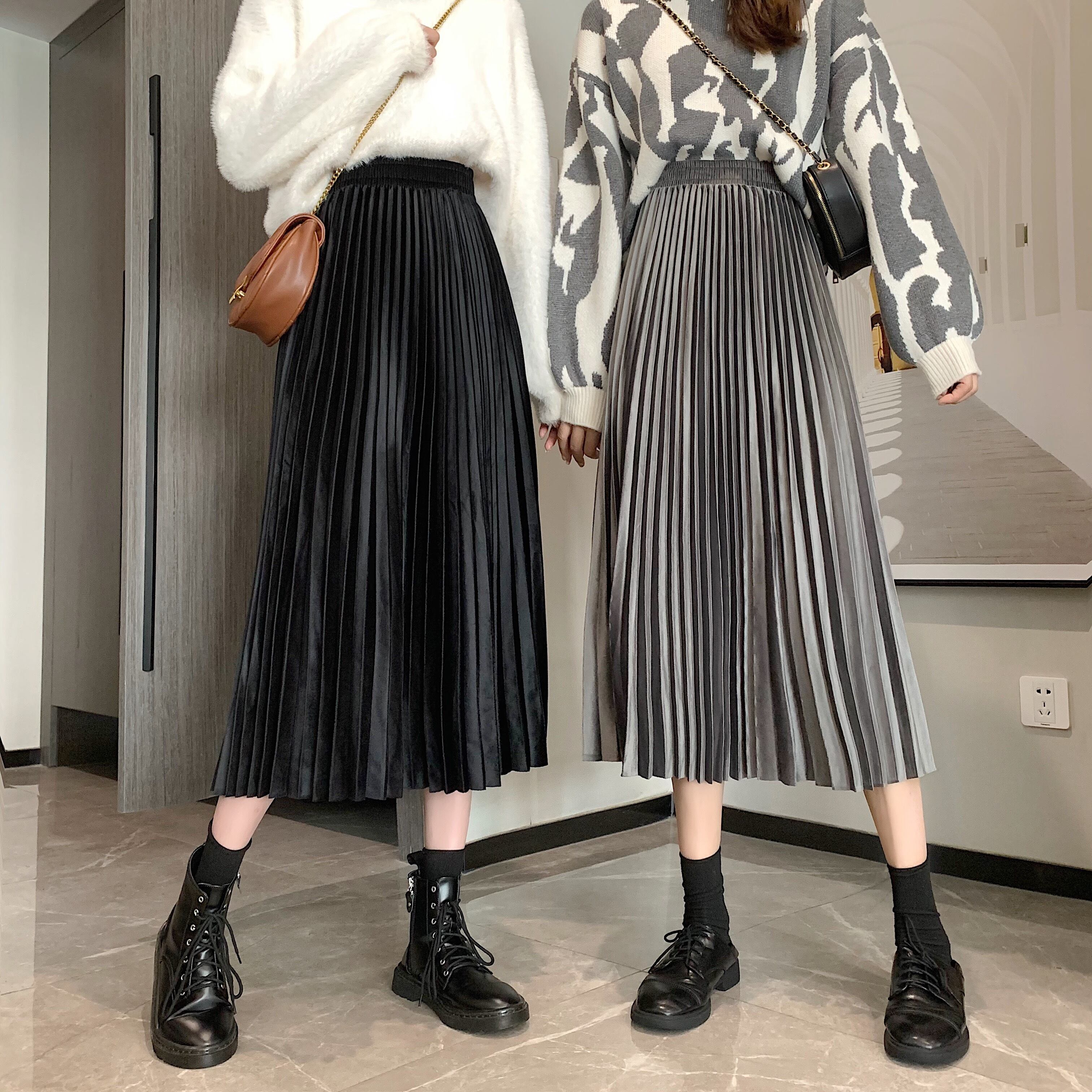 Aライン ベルベット プリーツスカート!