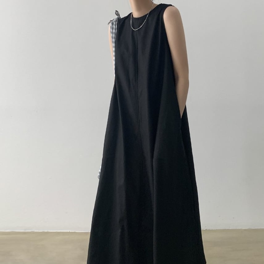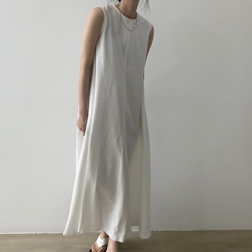 商品名:ラウンドネック ゆったりノースリーブ ロングワンピース