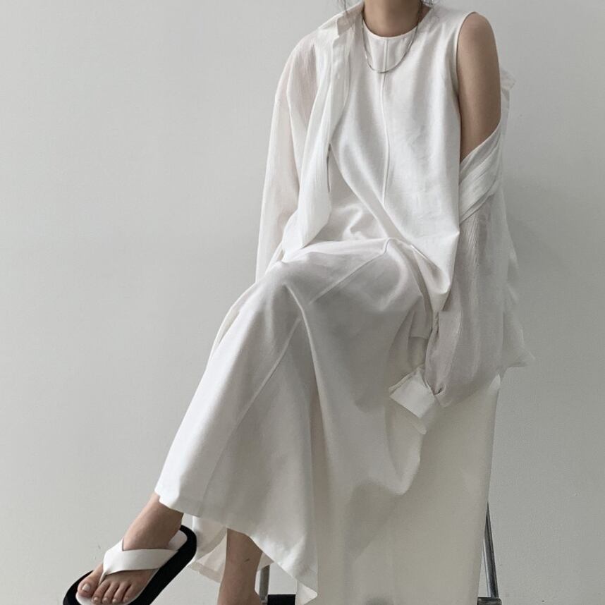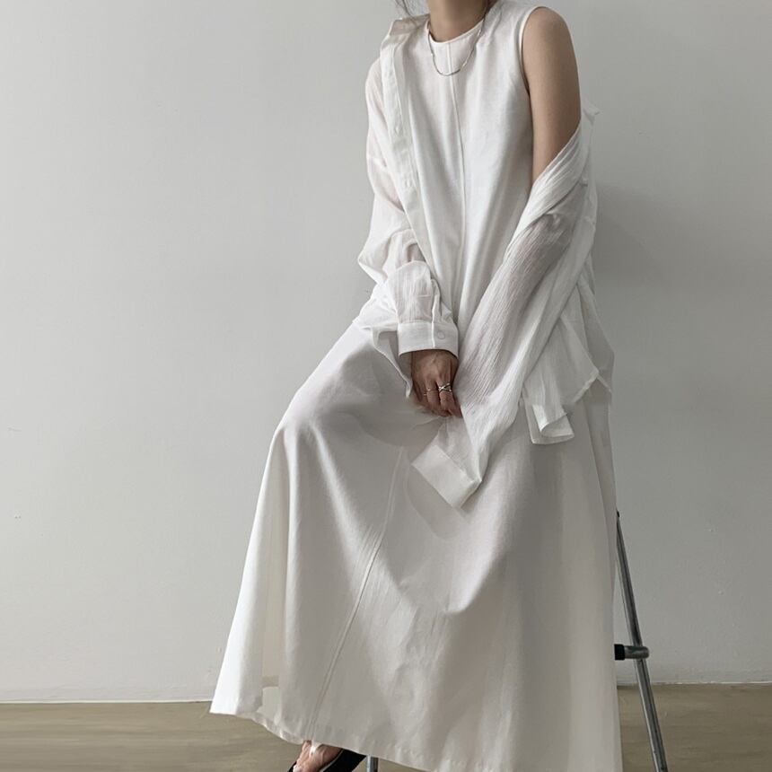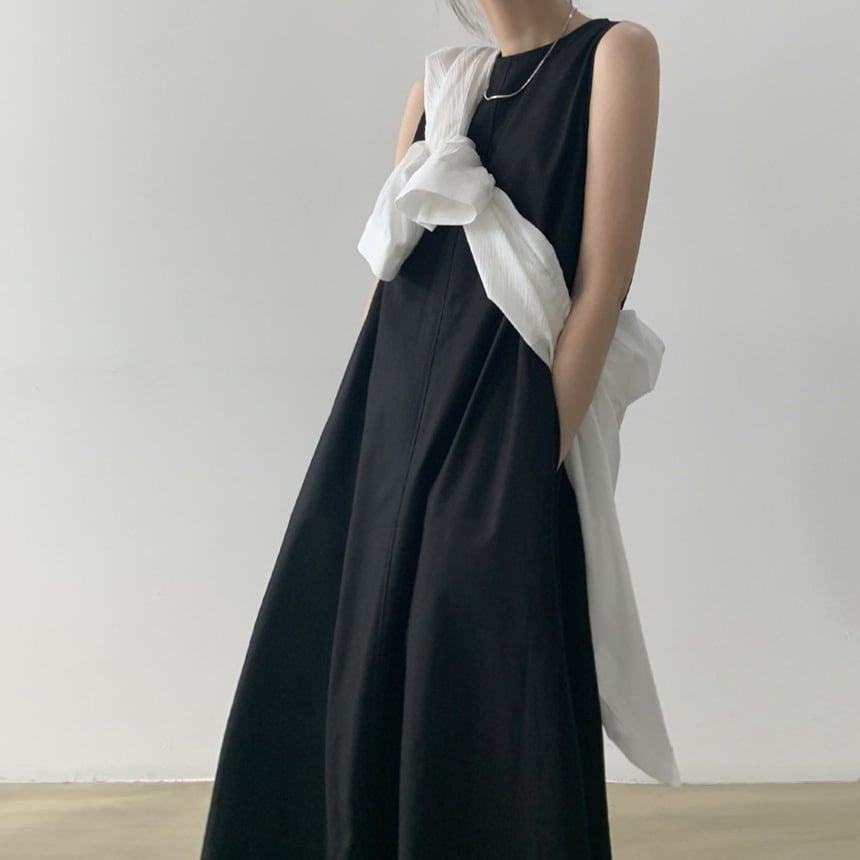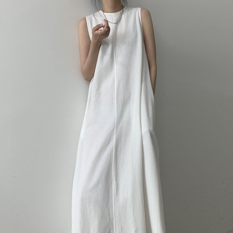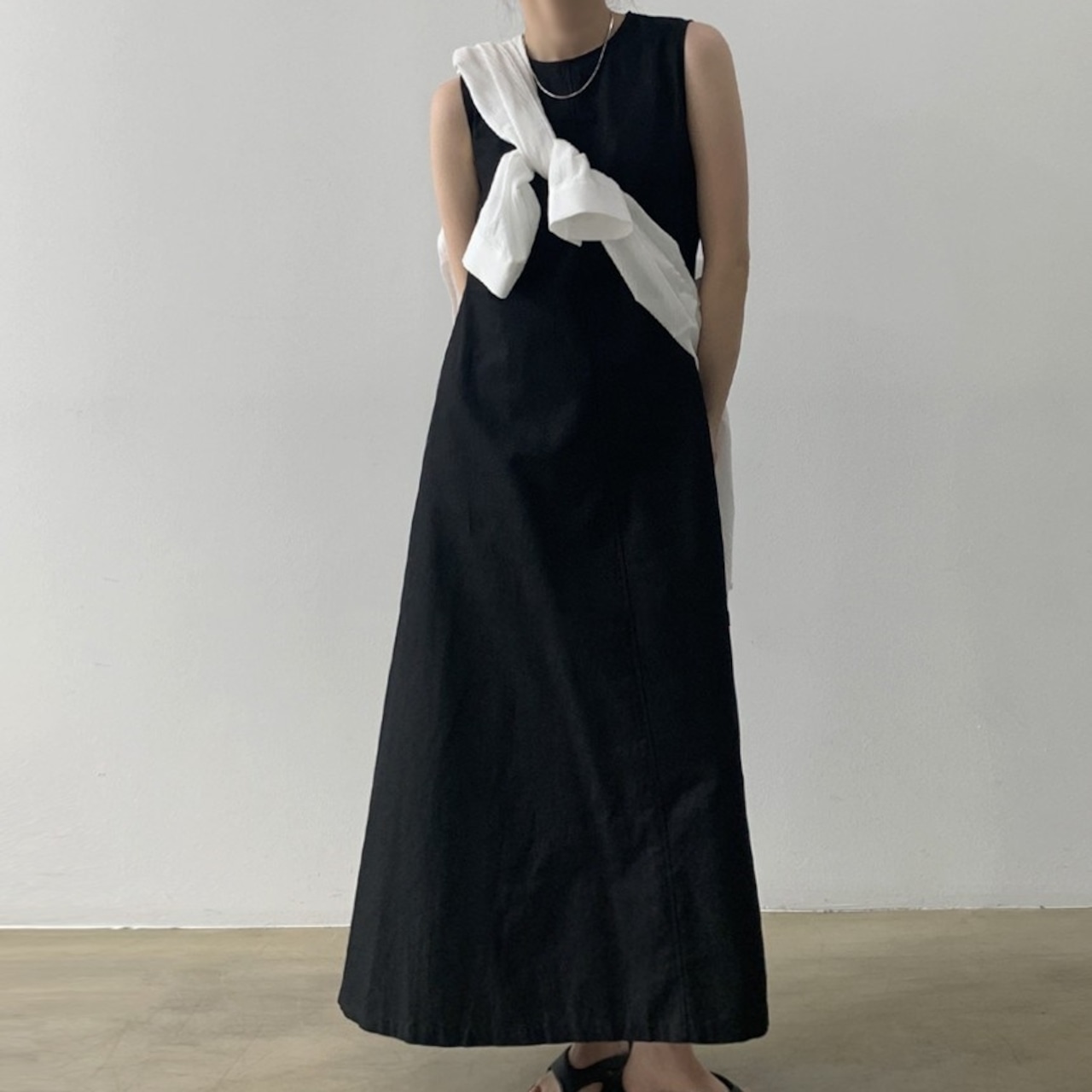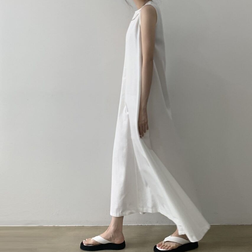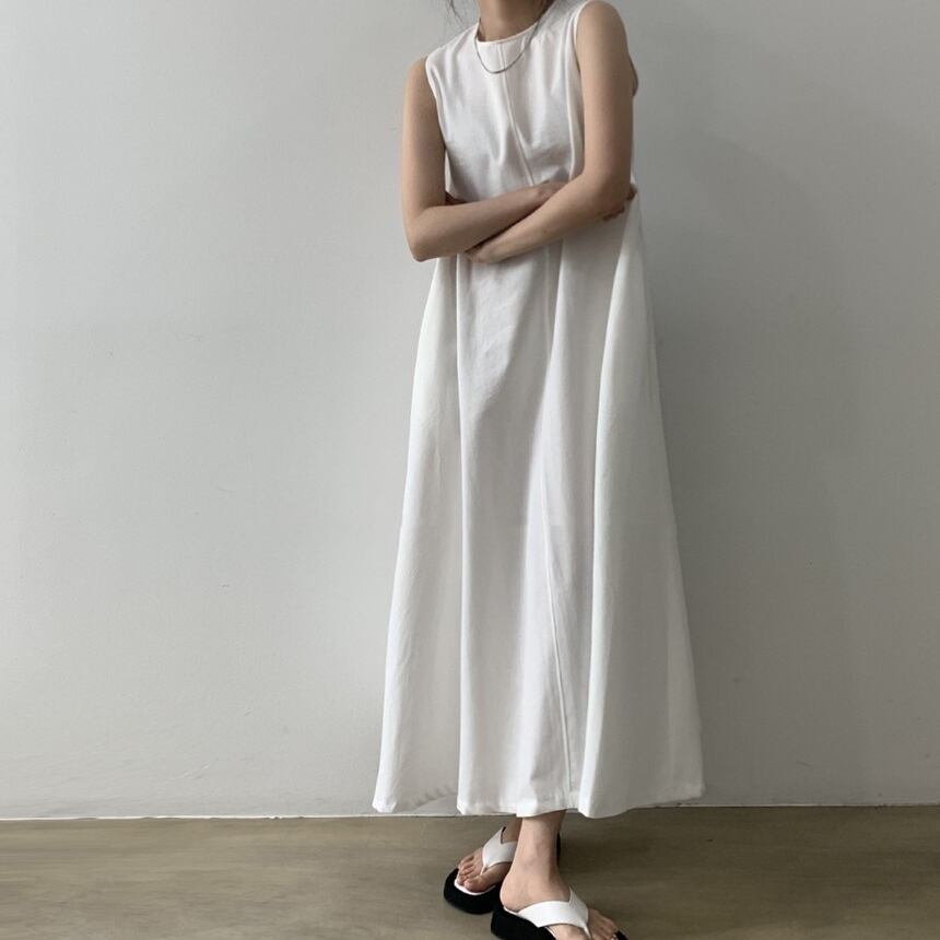 ロングワンピース レディース 春夏 秋冬 春 夏 秋 冬 白 黒 ノースリーブワンピース ゆったり ノースリーブ Aラインワンピース Aライン マキシワンピース 無地 楽チン ホワイト ブラック オフィスカジュアル きれいめ OL 10代 20代 30代 C-OSS0026