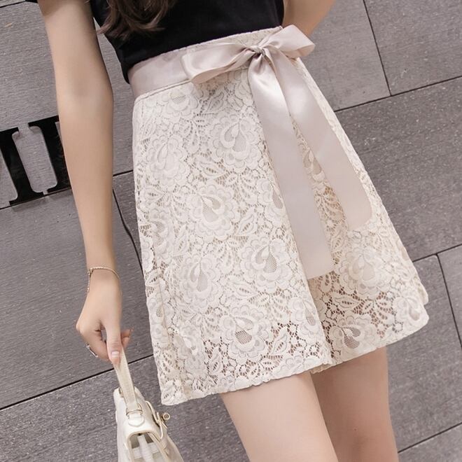 商品名:総レース ショート丈 ハイウエスト リボン キュロットパンツ
