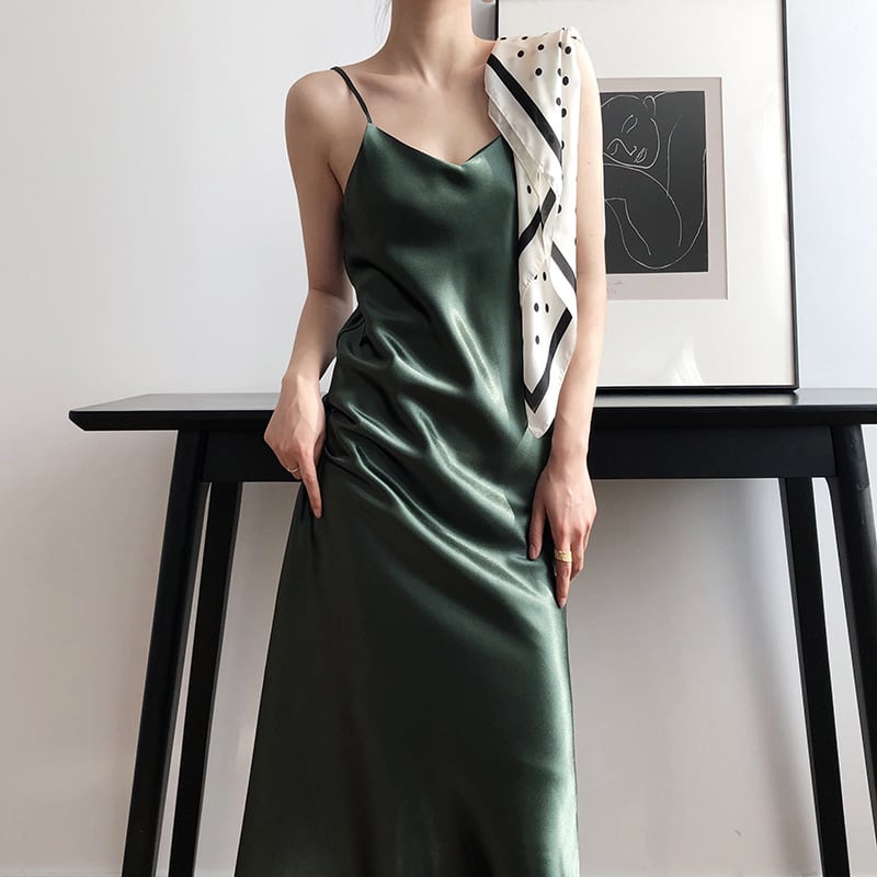 上品なサテンキャミソールワンピース!