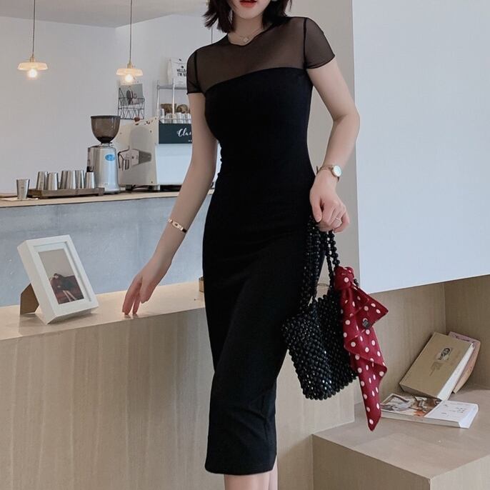ドレス レディース 春夏 秋冬 春 夏 秋 冬 黒 タイトドレス 半袖 シースルー ドレスワンピース ミディアムドレス ミモレドレス ロング ひざ丈ワンピース ブラック ワンピースドレス OL オフィスカジュアル 結婚式 パーティー お呼ばれ シンプル 10代 20代 30代 40代 C-DSS1022