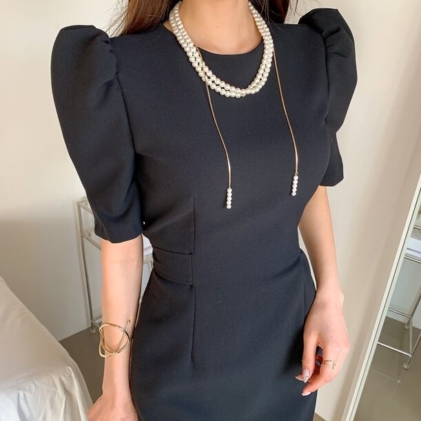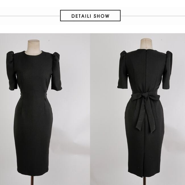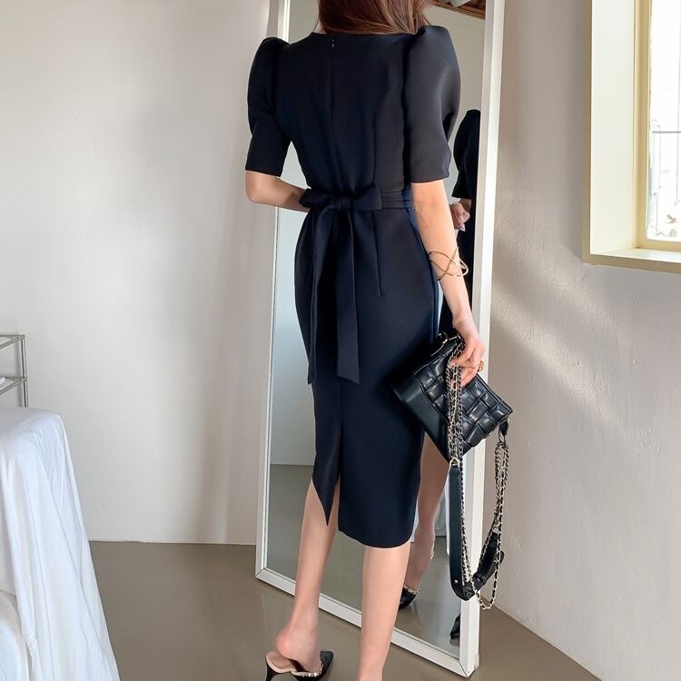 商品名:バックリボン パフスリーブ タイトドレス ワンピース