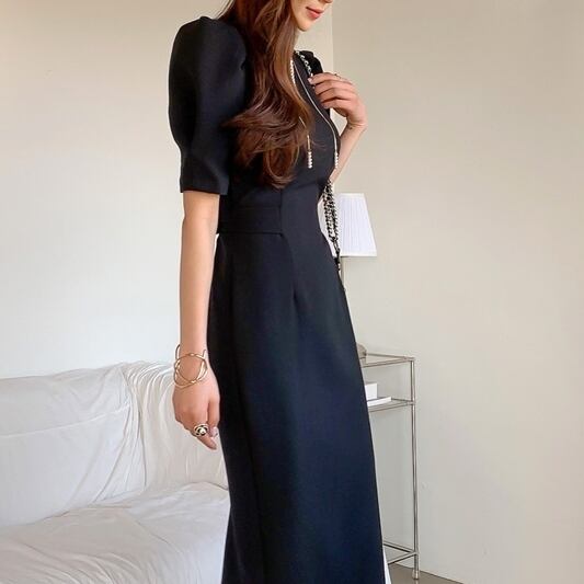 ドレス レディース 春夏 秋冬 春 夏 秋 冬 黒 タイトドレス 半袖 パフスリーブ ドレスワンピース ミディアムドレス ワンピース きれいめ 韓国 タイトワンピース ミモレドレス ダブルボタン ひざ丈ワンピース ワンピースドレス 韓国ファッション OL カジュアル オフィスカジュアル 結婚式 パーティー ブラック お呼ばれ シンプル 10代 20代 30代 40代 C-OSS0051