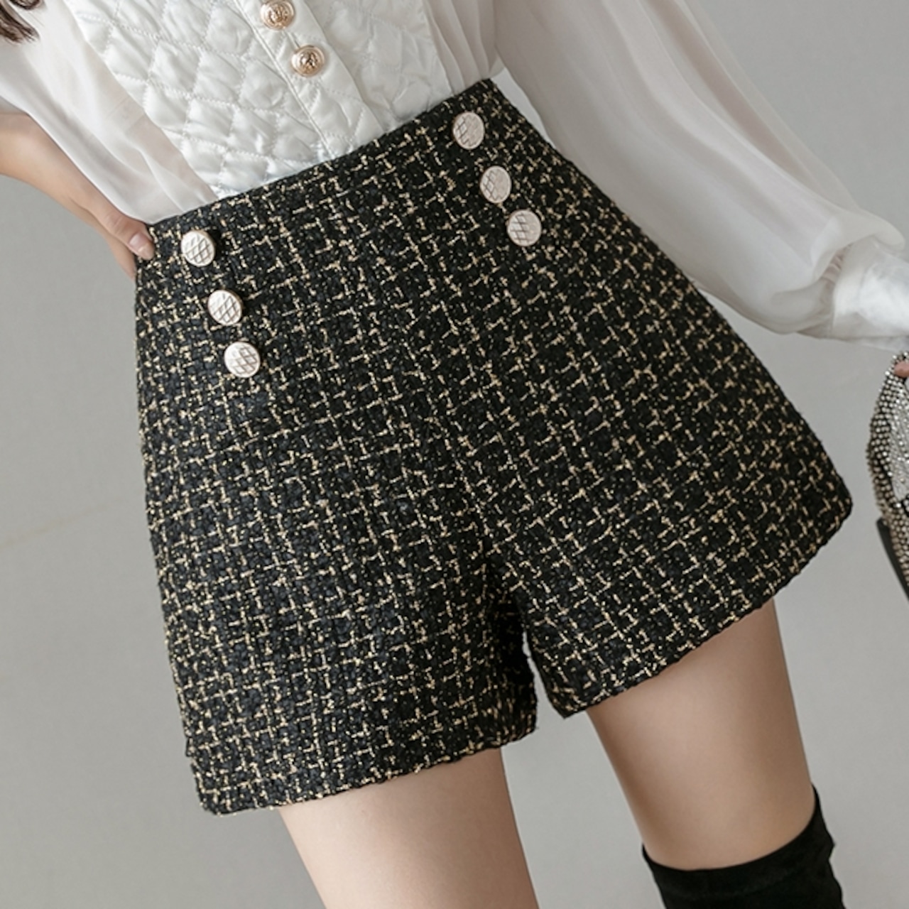 商品名:シンプル ツイード ワイド ショートパンツ