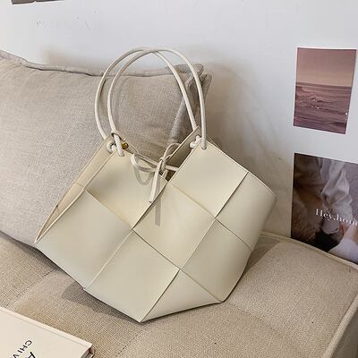 商品名:編み込みデザイン フェイクレザー トートバッグ