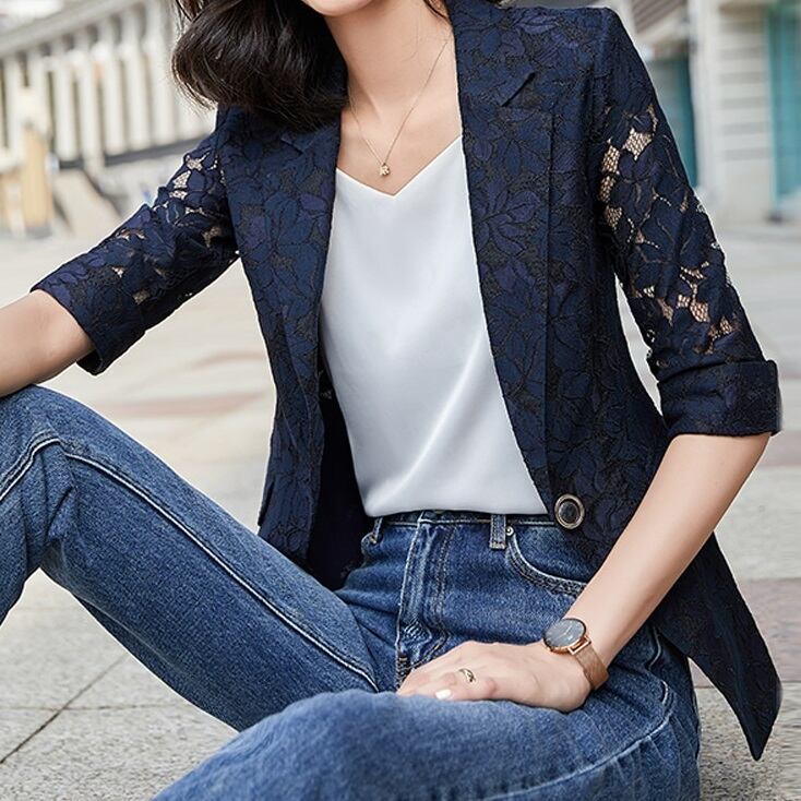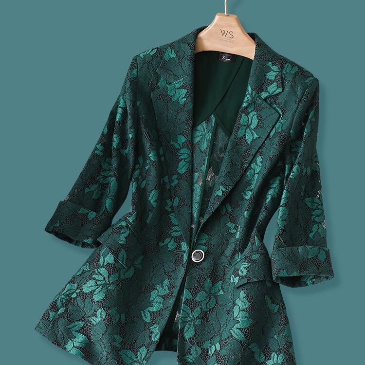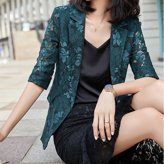 ジャケット レディース 春夏 秋冬 春 夏 秋 冬 黒 レースジャケット スリム 総レース タイト 七分 半袖 透け感 大人 女性用 韓国 ジャケット 上着 スーツ 羽織 カジュアル きれいめ オフィス OL オフィスカジュアル 結婚式 パーティー お呼ばれ グリーン ブラック S M L xl 2xl 3xl 4xl 10代 20代 30代 40代 C-JAW1019