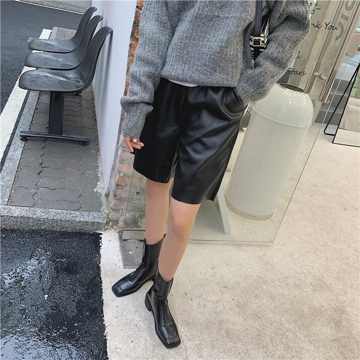 フェイク レザーパンツ レディース 春夏 秋冬 春 夏 秋 冬 黒 ボトムス パンツ ハーフパンツ 5分丈パンツ ひざ丈 フィクレザーパンツ ゆったり ワイド 膝丈 シンプル ストレート 美脚 脚長効果 きれいめ ショート丈 大人 ブラック カーキ キャメル 韓国ファッション 通勤 OL カジュアル オフィスカジュアル ウエストゴム オフィス OL S M L XL ズボン C-PSS1036