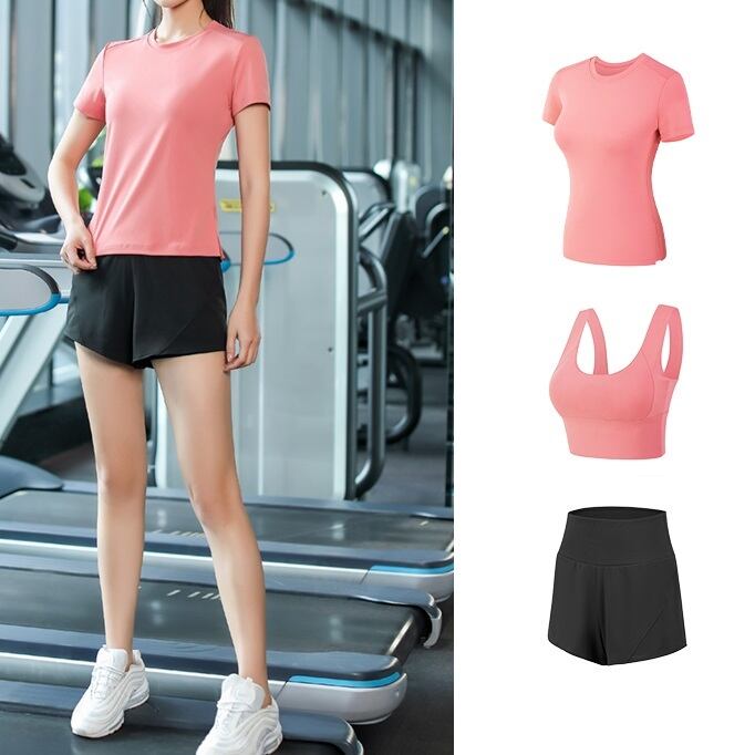 トップス、スポーツブラ、ショートパンツの3点セット!