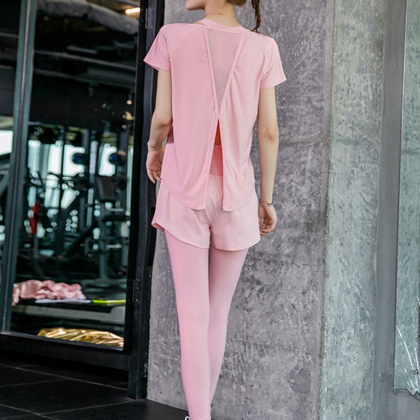 商品名:フィットネスウェア スポーツウェア 半袖トップス レギンス 2点セット
